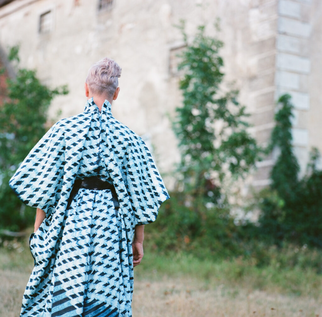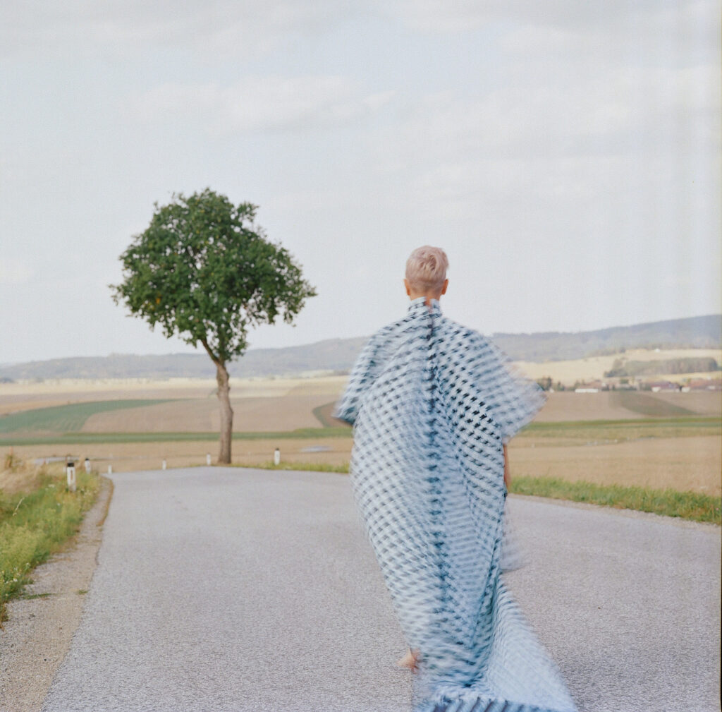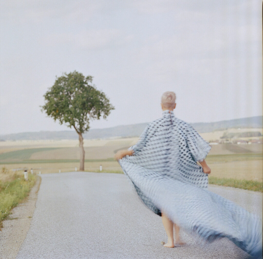 I have cared about clothing for as long as I can remember. Even as a little kid, I cherished my little pink dress with the white cotton lace. As a teenager, I began working with a local seamstress to bring my ideas to life, finding fabrics myself and seeing my visions turned into garments. Much later, in 2009, I approached a Viennese designer I admired, asking if she would create some of my designs. Instead, she offered me an informal apprenticeship. For over a year, I joined her in the studio one day a week, learning the fundamentals of design, sewing, and textile work while creating my own pieces. That experience reinforced my belief in my capacity to do it myself. Textiles are not just materials to me – they are storytellers and part of my identity. Style is not just how I dress – it’s how I live and how I express myself and communicate with others. Textiles, thread, and the processes of cutting and sewing are part of my practice. They are part of my art and world making, and not a costume.