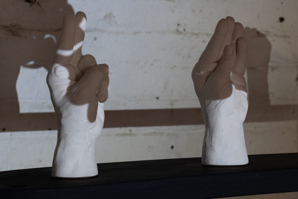 Part III (Hand Gestures) 2023 Plaster approx. 23 x 23 x 23 cm (3 sculptures)